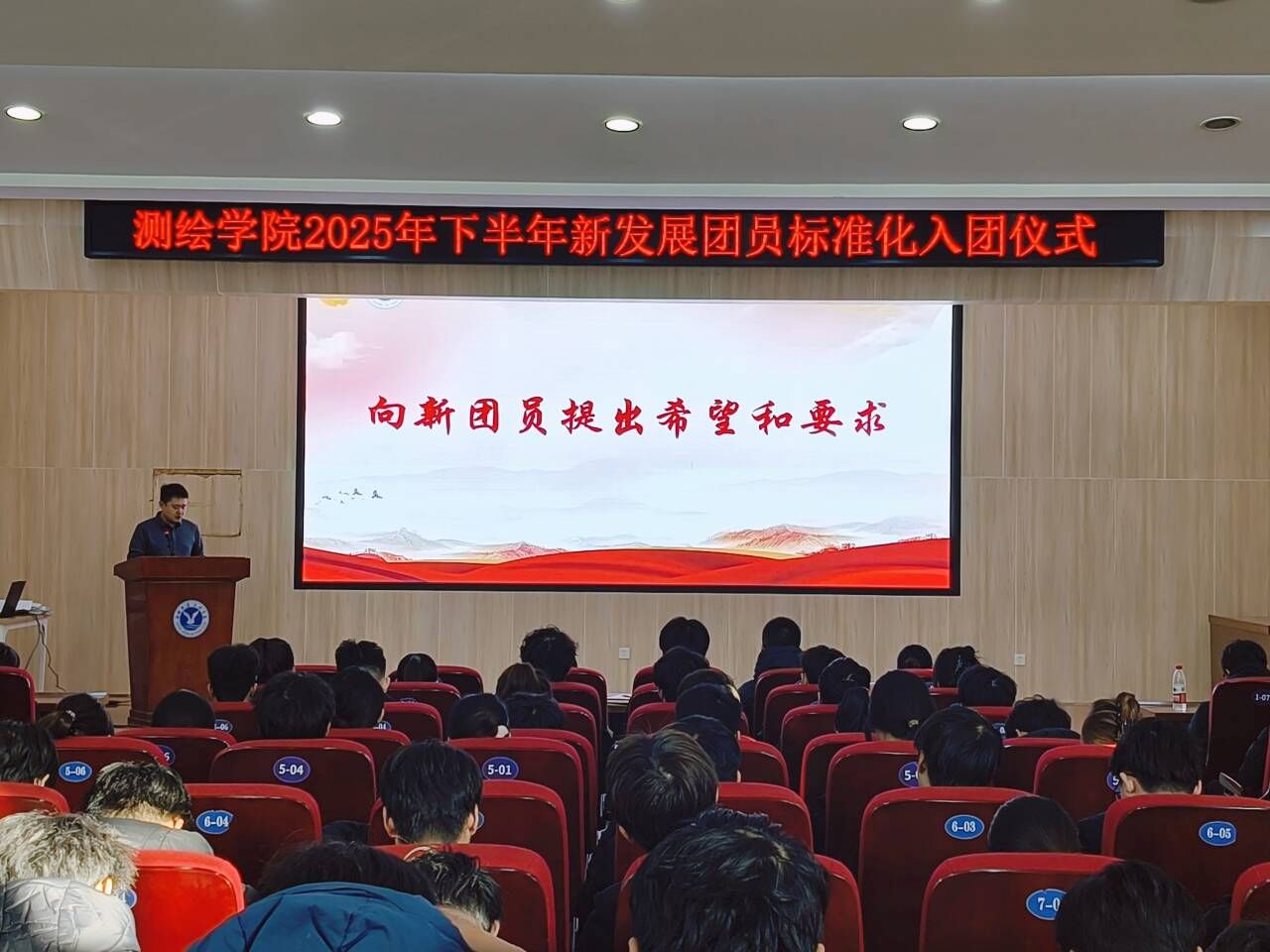1月12日,测绘学院举行2025年下半年新发展团员入团仪式。学院团总支副书记冯秀颖、全体辅导员、新发展团员及优秀团员代表参加仪式。