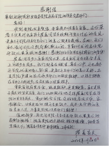 贺信中,学院详细介绍了同学们在校期间的学习成果、竞赛佳绩以及综合素质表现,字里行间饱含着对同学们不懈努力的认可和对家长们默默付出的感谢。这一封封贺信,既是对优秀学子的激励,也是向家长传递学院育人理念,帮助家长更加了解学生在校学习生活情况的有效举措。