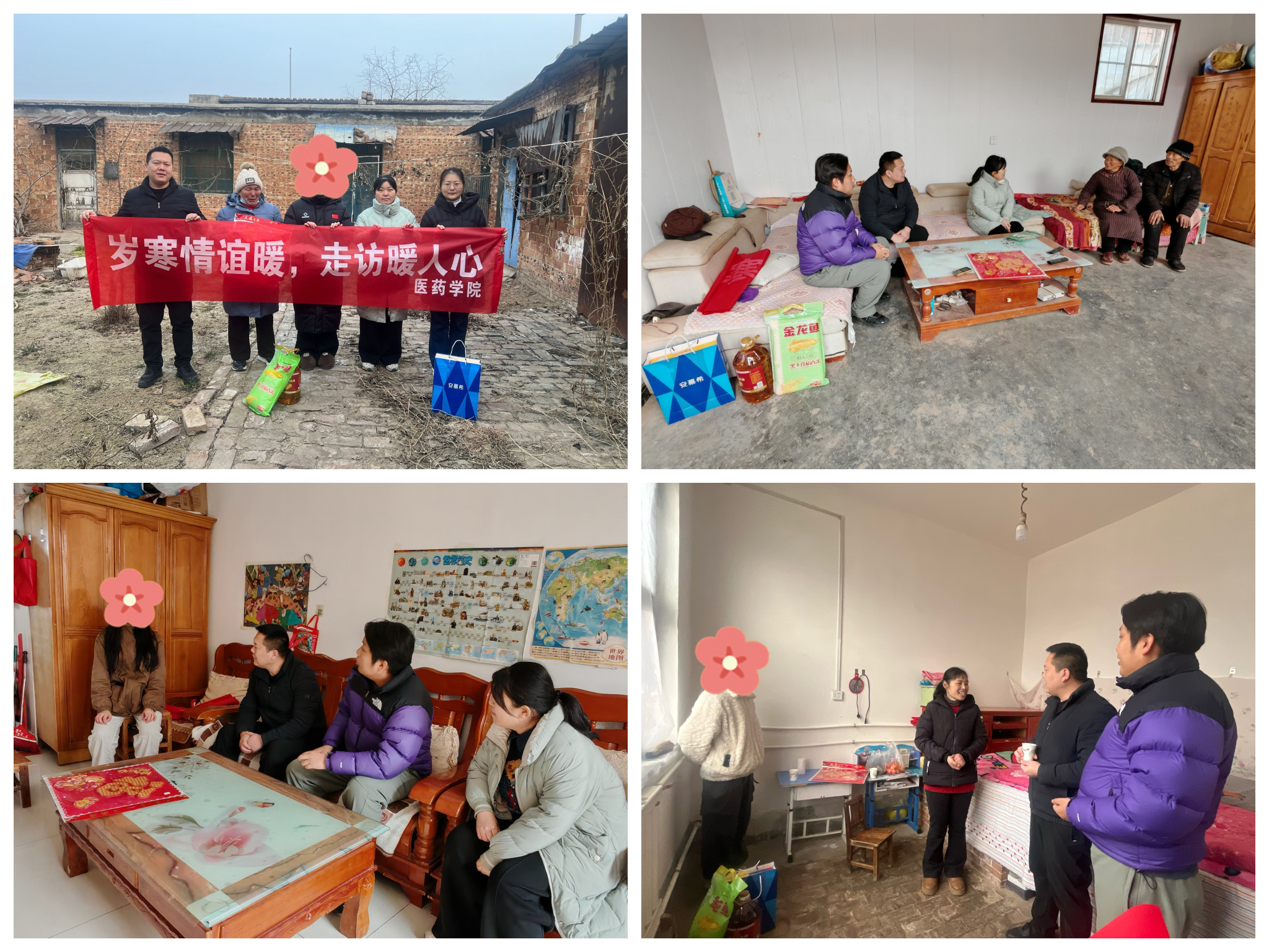 岁末寒冬送温暖,真情关爱暖学子。为切实将学校的关怀落到实处,提升资助育人成效,1月26日至27日,医药学院组织开展寒假走访慰问系列活动,通过“线下实地走访+线上云端关怀”相结合的模式,为多名家庭经济困难学生送去温暖与鼓励,以实际行动筑牢育人根基。