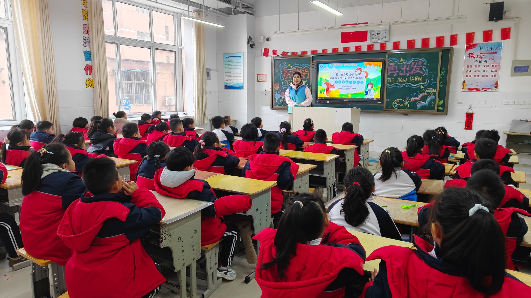 春潮涌动,薪火相传。3月5日,在全国第63个学雷锋纪念日之际,校团委、健康护理学院、新区街道八一社区新时代文明实践站走进兴华路小学,携手一年级2班48名小学生开展“传承雷锋精神 争做时代新人”主题活动,通过故事宣讲、非遗剪纸、急救科普等丰富多彩的形式,让雷锋精神浸润童心,引导少年儿童以实际行动践行榜样力量,厚植责任与担当意识。