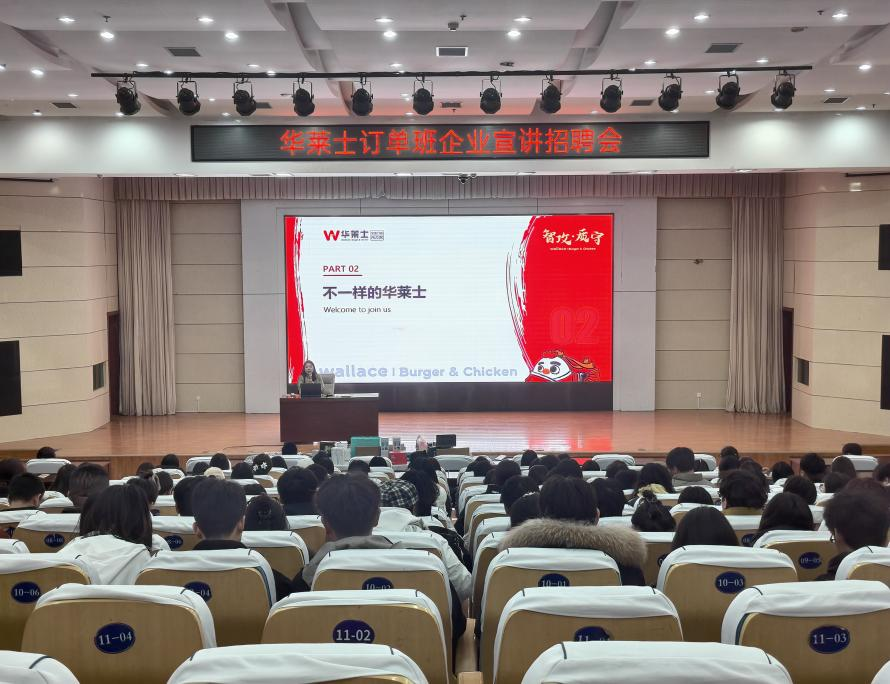 为搭建校企人才对接桥梁,促进学生高质量就业,校企共育培养“新型店长”。3月17日晚,经贸学院在图书馆报告厅举行华莱士订单班企业宣讲招聘会,近400名学生参加,开启“青春与职场”的双向奔赴之旅。