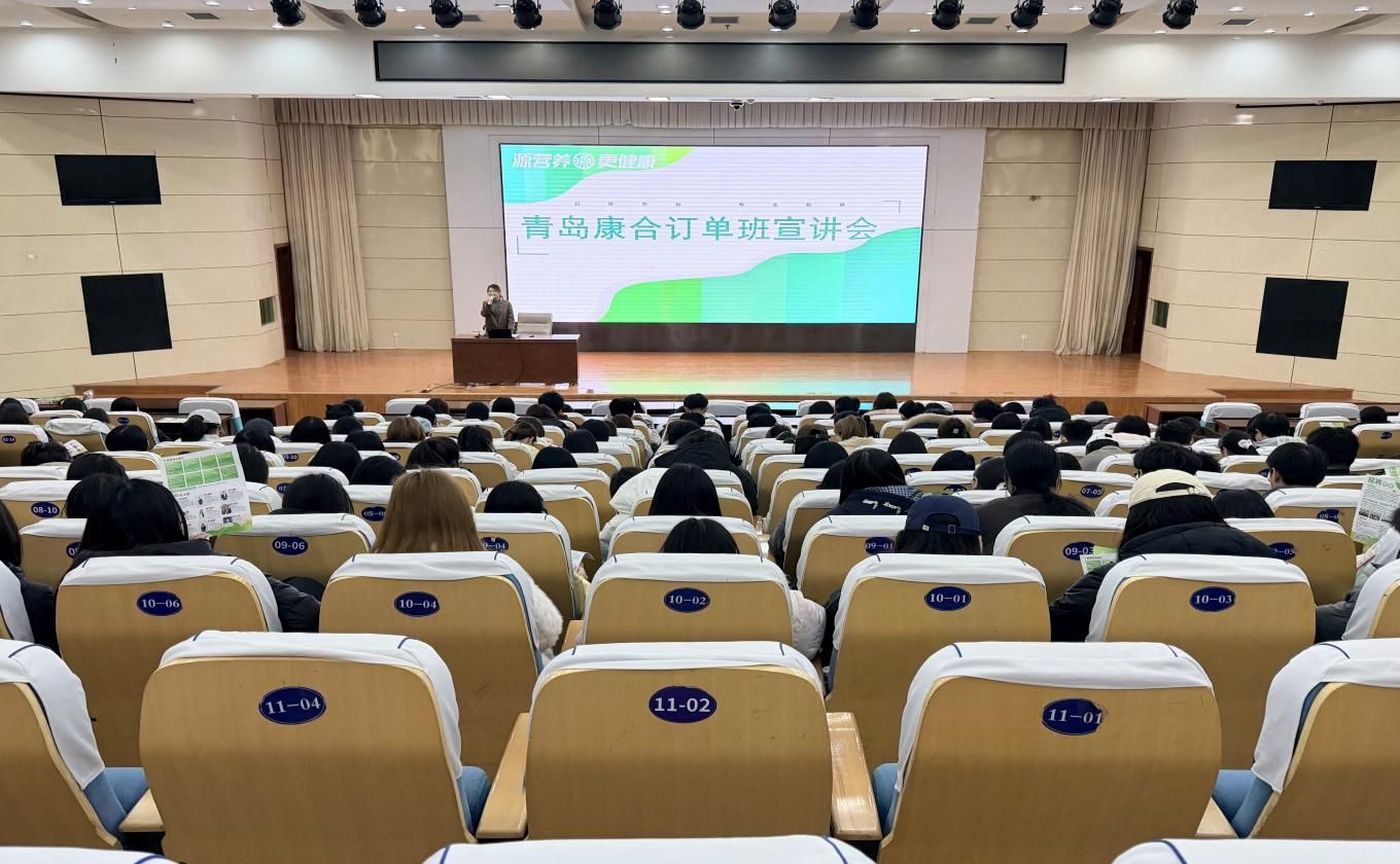 为进一步搭建校企沟通桥梁,拓宽高校毕业生就业渠道,传播科学健康营养理念,3月19日,经贸学院携手青岛康合营养家在图书馆报告厅举办康合订单班宣讲招聘会,经贸学院24级400余名学生参加。