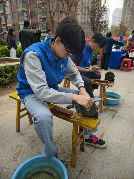 为弘扬“奉献、友爱、互助、进步”的志愿服务精神,深入开展“百万大学生进社区”社会实践活动,3月28日,智能制造学院“智”愿先锋社会实践团走进柳园街道书香东郡开展磨刀志愿服务。
