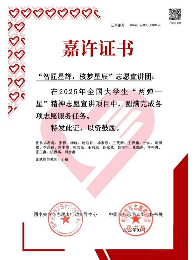 下一步,“智匠星辉 核梦星辰”志愿宣讲团将珍惜荣誉、再接再厉,持续打磨宣讲内容、创新宣讲形式,进一步扩大宣讲覆盖面,引导广大青年学子以青春之声传递初心使命,以实干之行书写青春答卷,让红色精神在新时代青年中代代相传、永放光芒。