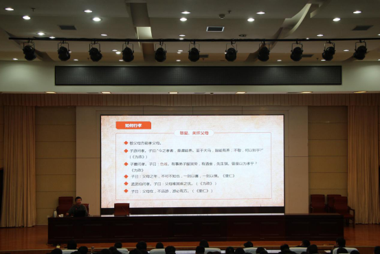 讲座上,唐教授从进取心、仁爱心、宽容心、恭敬心、诚信心等优秀品德讲起,为大家解析了《论语》中蕴含的丰富人生智慧。他说,同学们来到大学,都是为了追求一个光明的未来,成就自己幸福美满的人生,而这些都需要美好的品德作为支撑。在这方面,两千五百年前的孔老夫子就为中华民族树立了至高无上的典范。熟读《论语》、深入理解其中的思想,对同学们健全品格、成就事业都是大有裨益的。唐教授寄语同学们,希望大家珍惜学生时代的大好光阴,珍惜学校提供的中华优秀传统文化的学习机会,从中汲取人生智慧,照亮未来的人生旅途。