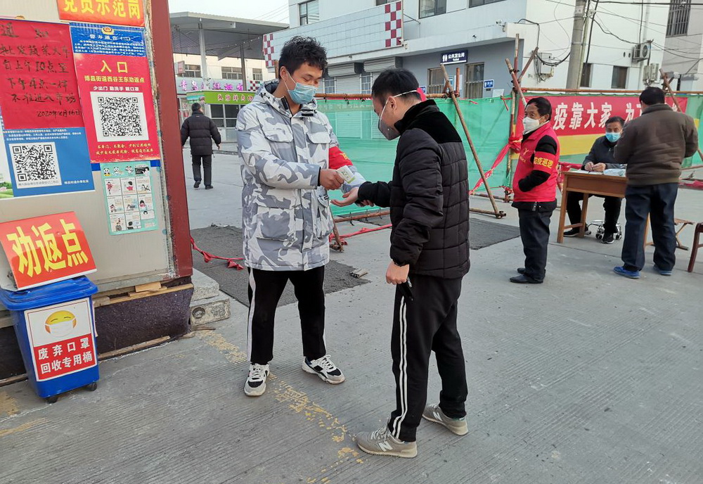 在滨州市博兴县博昌街道西谷王东劝返点,2019级建筑装饰工程技术一班的团支书戚正,每天上午九点半至下午五点半,定时在这里防疫执勤,协助登记、排查进出人员,为进出居民测量体温,进行疫情宣传引导。他说:在前线,无数的志愿者用青春与病毒斗争。在后方,我们青年学生要以热血为“战疫”鼓劲。不集聚、不传谣,不添堵、不添乱。在家乡、在后方筑牢防疫钢铁长城,为决胜战“疫”贡献力量。