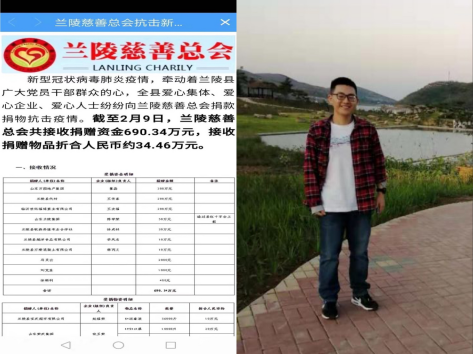 2019级会计班刘芃呈同学,看到疫情防控一线的工作人员十分辛苦,而且防疫物资又十分紧缺时,就决定将平时积攒下来的1000元钱全部捐到兰陵慈善总会,为打好疫情防控阻击战贡献一份力。