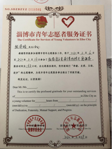 张泽硕,机电工程系2017级机电一体化技术专业学生,共青团员,临淄团区委大学生青年突击队成员。疫情爆发初期,他第一时间报名参加了临淄区抗击疫情志愿服务,成为返乡大学生志愿者的积极代表。2020年2月6日至2月23日志愿服务期间,张泽硕同学协助社区及时掌握群众需求,做好社区进出人员登记、体温测量、信息采集、人员隔离、秩序引导、分类筛查、防疫宣传等工作,协助淄博市公安局临淄分局治安警察大队进行来淄人员信息录入、信息排查、数据分析等工作,累计志愿服务时长达到162小时。张泽硕同学认真负责,积极主动,受到服务点领导、同伴们的一致好评。