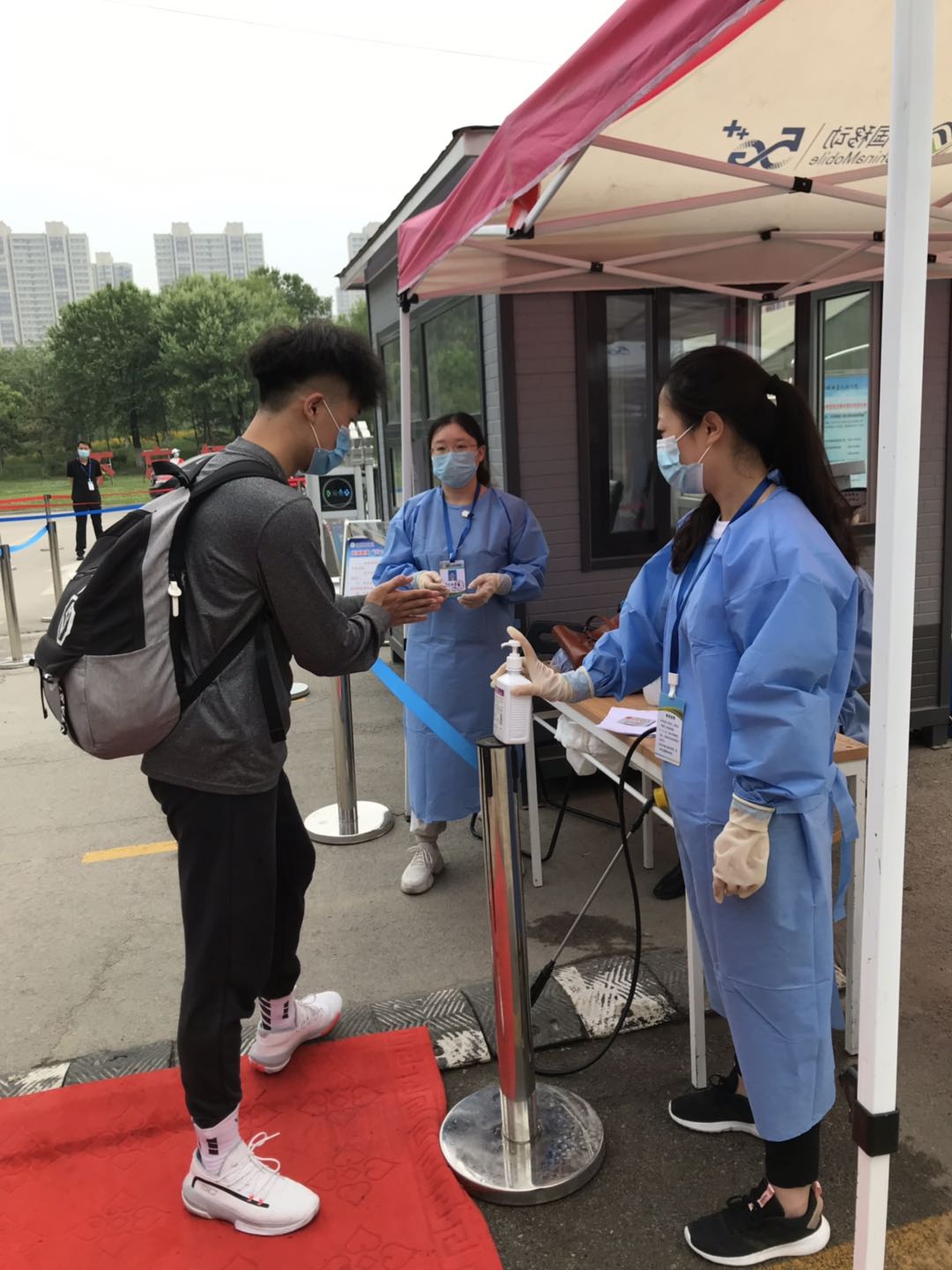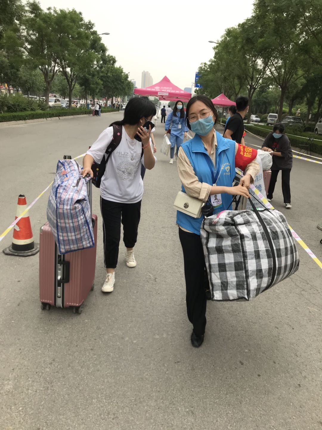 5月23日清晨,微熹初露,护理系全体教职工已准备就绪,进入到迎接返校学生的工作状态。 “有序排队,保持间距”的标语和间隔线提醒学生要保持距离,不拥挤;“欢迎回家”的臂标和“花开有时,复学有期,信心满怀,无恙归来”的标语承载着护理系教职工对学子归来的殷切期待。行李消毒、手足消毒、测量体温、核验证件、登记信息等环节一项也不能少。青年党员教师王琰、张然看到学生行李太多,还主动当起了行李搬运工,让阔别多日的学子感受了学校的温暖,让学生家长少了份担忧。