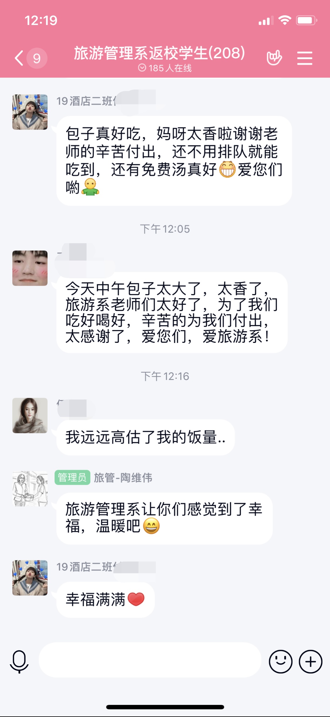 “同学们,新出炉的大包子,下课快来吃吧!”6月4日中午,旅游管理系全体返校学生收到了团总支书记陶维伟发来的信息。今天是学生们返校的第九天,九天时间里,旅游管理系全体领导老师想学生之所想,让学生们感受到了满满的温暖。