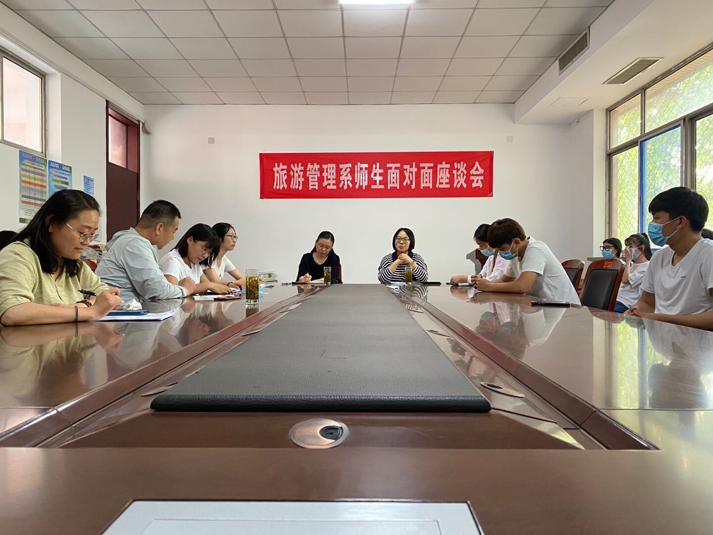 为深入了解学生心理动态,进一步解决学生返校后的实际困难,6月10日,旅游管理系召开“师生面对面”座谈会,党总支书记、副主任卢萍,团总支书记陶维伟以及全体辅导员、班主任和40位各级学生代表参加会议。