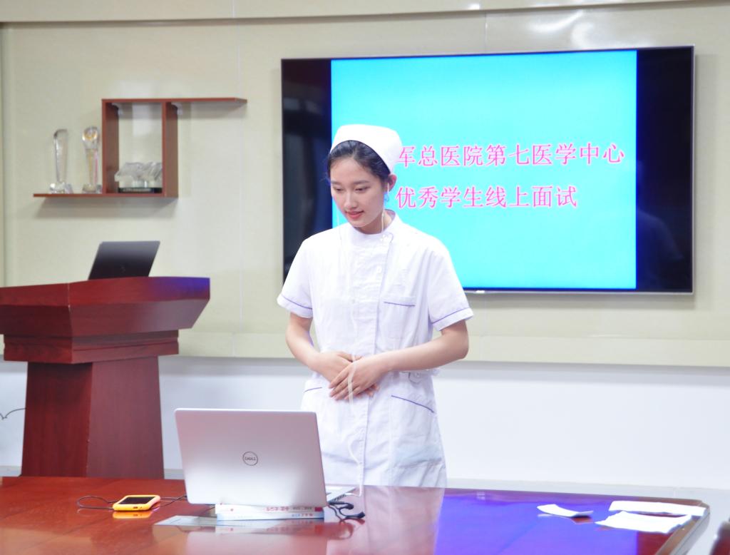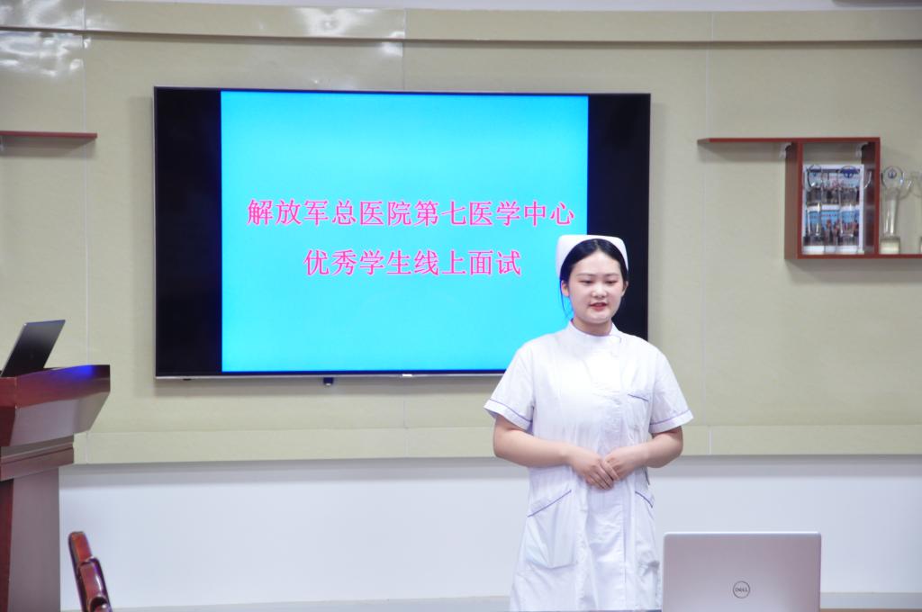 6月17日,护理系组织学生在会议室参加解放军总医院第七医学中心线上面试。医院考官从学生成长背景、家庭情况、在校表现等方面进行考察,最终13名学生通过考核,成功入选。