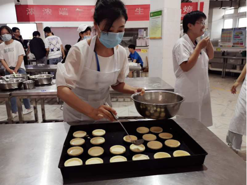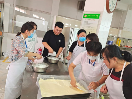 为期十天的培训将要接近尾声,正值端午佳节来临,为培养师生情谊,6月23日下午,建筑工程系开展“了浓浓端午情 师生协烘焙”活动,系领导、教师及30名学生代表共同参加。经验丰富的刘楠、张义潮老师亲自指导,大家兴致勃勃地学习制作戚风蛋糕卷、蛋挞等精致甜点。