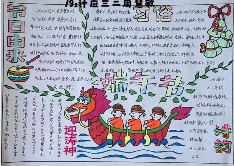 举办手抄报、动漫作品比赛。在活动中,各个班级积极参与,将有关端午节的起源、传说、精神内涵等融入到手抄报和动漫作品的设计中,选送的作品主题鲜明,内容充实,图文并茂,形式多样,深刻表现出同学们对祖国传统节日、传统文化的热爱,展现了同学们积极向上的精神风貌,营造了浓郁的校园文化氛围。