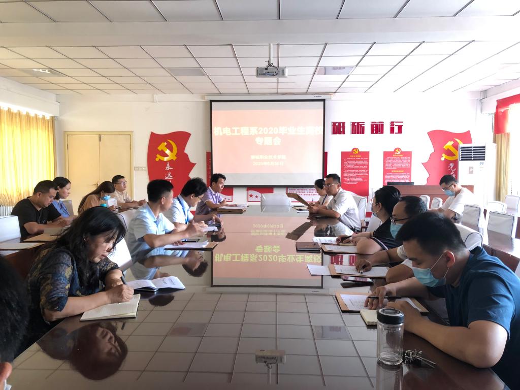 为做好疫情期间毕业生离校工作,保证学生安全、高效、有序地办理毕业手续,6月30日,机电工程系召开专题工作会。会议由系党总支书记、系主任葛序风主持,党总支副书记张凤军、副主任张桂华、团总支书记刘晓刚及全体毕业班主任参加会议。