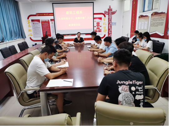 为提高入党积极分子的思想政治素养、理论修养和思想觉悟,确保新发展党员质量,6月29日上午,建筑工程系在党员活动室开展了入党积极分子教育培训。党总支副书记邵琰、学生党支部书记冯秀颖进行了讲授指导,全体辅导员以及30余名入党积极分子参加了培训会。