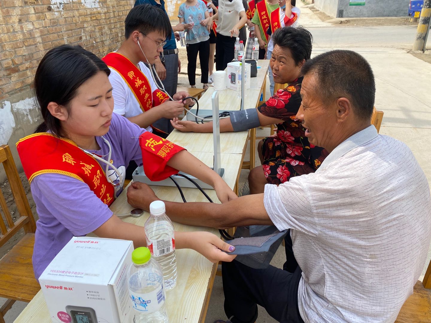 8月3日,护理系党总支副书记李娜、团总支书记李林带领“下乡者联盟” 和“疫护有我”志愿服务队16名师生来到高新区许营乡绣衣集村,开展了形式多样的实践活动。支起桌椅板凳,发挥专业特长,为来往村民量血压、评估身体健康状况、答疑解惑。帮助村委打扫卫生、清理垃圾、宣传垃圾分类政策、指导农村村民正确倒放垃圾。带上粮油,给独居老人送温暖。