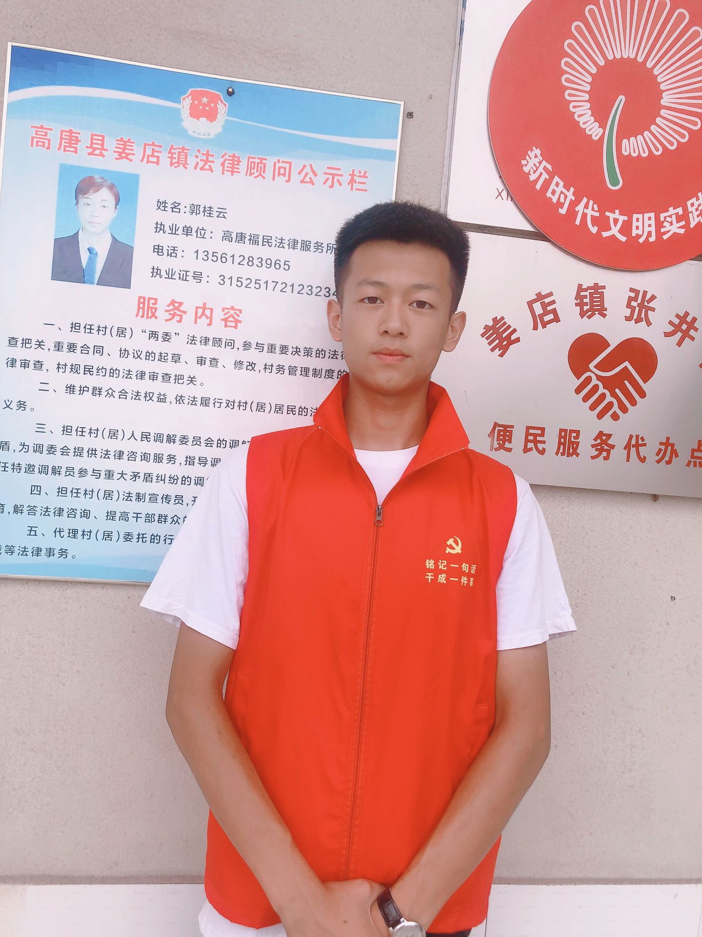 孙富正,是旅游管理系2019级高铁客运乘务专业一班班长,在疫情防控形势最紧张的时期主动报名成为了一名家乡疫情防控志愿者,为往来家乡的车辆人员登记信息,测量体温。今年暑假,孙富正再次主动请缨,来到社区广播站,为居民宣讲防疫知识以及夏季防疫注意事项;针对新闻频发的溺水事件,宣讲了私自下河的危险,提醒暑假放假在家的小朋友牢记防溺水安全常识;在创建文明乡村的关键时期,宣讲文明出行做文明人的重要意义,带动大家一起为创建文明乡村贡献力量。