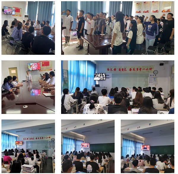 “宣”。护理系团总支组织75名共青团员代表在团员活动室进行“重温入团誓词.砥砺奋进”宣誓活动,团总支书记李林参加并向宣誓学生讲述了我校优秀毕业生驰援武汉的事迹,希望同学们向榜样学习,做好学业规划,努力成长为奋发有为的新时代青年。