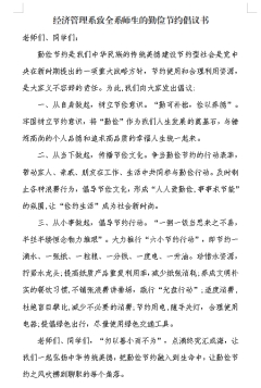 俭以养德 贵在实践。为了使全体师生自觉树立艰苦奋斗的思想意识,在实践中培养勤俭节约的日常行为习惯,经济管理系发出“三个倡议”,号召全体师生以实际行动践行勤劳节俭好品德。即从自身做起,树立节俭意识;从当下做起,传播节俭文化;从小事做起,倡导节约行动。