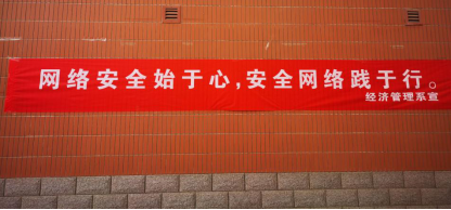 营造浓厚氛围。组织开展网络宣传周宣传活动,结合经济管理系实际,采取案例讲解、条幅宣传、微信新媒体、主题班会等多种形式,组织师生宣传网络安全知识,增强网络安全意识,提升网络安全风险防范能力。