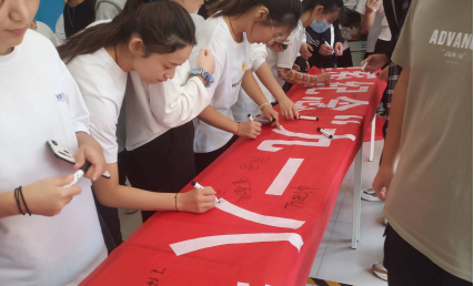 铭记历史国耻 缅怀革命先烈。9月18日,经济管理系开展“铭记国耻、砥砺前行”系列活动,“学习四史、明志励行 做最美讲述者”优秀选手梁晓艺做爱国主题分享,与团干团员一同回望那段刻骨铭心的九一八历史,一同翻开新中国波澜壮阔、气势恢宏的发展画卷,聆听青年人在新时代唱出的奋斗赞歌,激励团员青年们与祖国共命运;在满怀爱国与奋斗的誓词当中,展现当代青年与祖国同呼吸、与时代共奋进的爱国主义情怀;师生代表和学生代表在横幅上签下自己的名字,表达爱国之情。