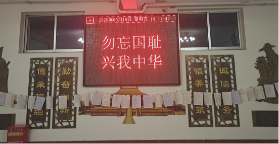 “九一八”当天,各班召开主题班会,班主任给大家讲解那段沉重的历史,让同学们铭记为国奉献的无数英雄,增强“国家兴亡,匹夫有责”的使命感。