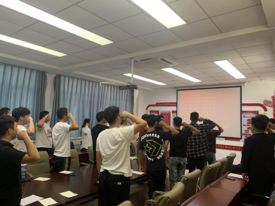 “我以青春的名义庄严宣誓:勿忘国耻,不辱使命;遵纪守法,明礼修身……”铿锵有力的声音让每位学生干部更加坚定理想信念,坚守意识初心,努力学习,做社会有用人才。
