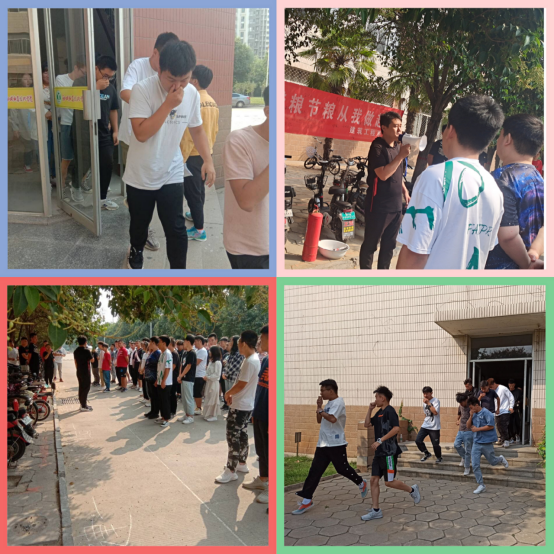 哨声吹响,疏散演练开始。同学们手掩口鼻,靠墙弯腰,按照指定路线,有序跑出教学楼,到达指定位置集合。接下来,辅导员冯秀颖强调了消防意识的重要性,并指导学生干部给大家演示如何正确使用灭火器。