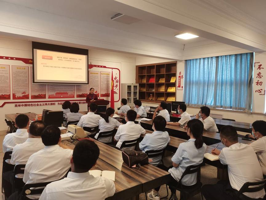 9月19日下午,华夏银行柳园支行第三党支部、东昌支行第五党支部共计21名党员来到学校,与思政部开展党建共建活动。学校思政部教师邢秀兰以“弘扬伟大抗疫精神,当先锋建新功”为题,为两个支部的党员讲主题党课。