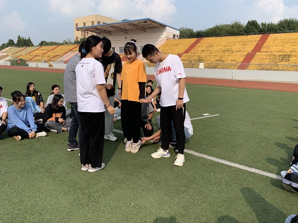 本次拓展训练以手指抬人,齐眉棍等游戏作为开场,同学们热情高涨,积极参与,很快便进入了角色。随后,大家被随机分成6组,进行团队组建,在规定时间内选出队长、规划队名、设立口号和队歌,并依次有序进行团队展示。在团队王塔游戏中,团队成员相互配合,明确分工,齐心协力破解答案。同学们之间齐心进退,迎难而上,互相信任,使团队效用实现最大化。在培训过程中,指导老师通过细致观察,指出了同学们的存在的不足,并提出了有针对性的建议。