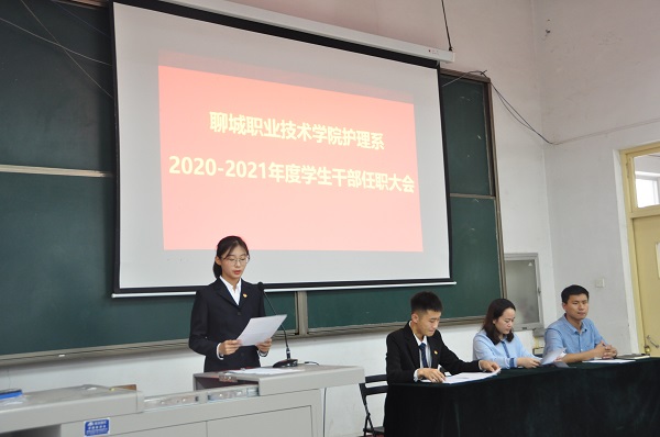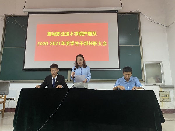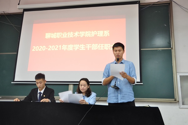 为进一步加强学生干部队伍建设,激发学生干部工作热情,9月28日下午,护理系在南北一教室举行学生干部任职大会。团总支书记李林、副书记魏伟、全体辅导员及四委会成员参加本次会议。