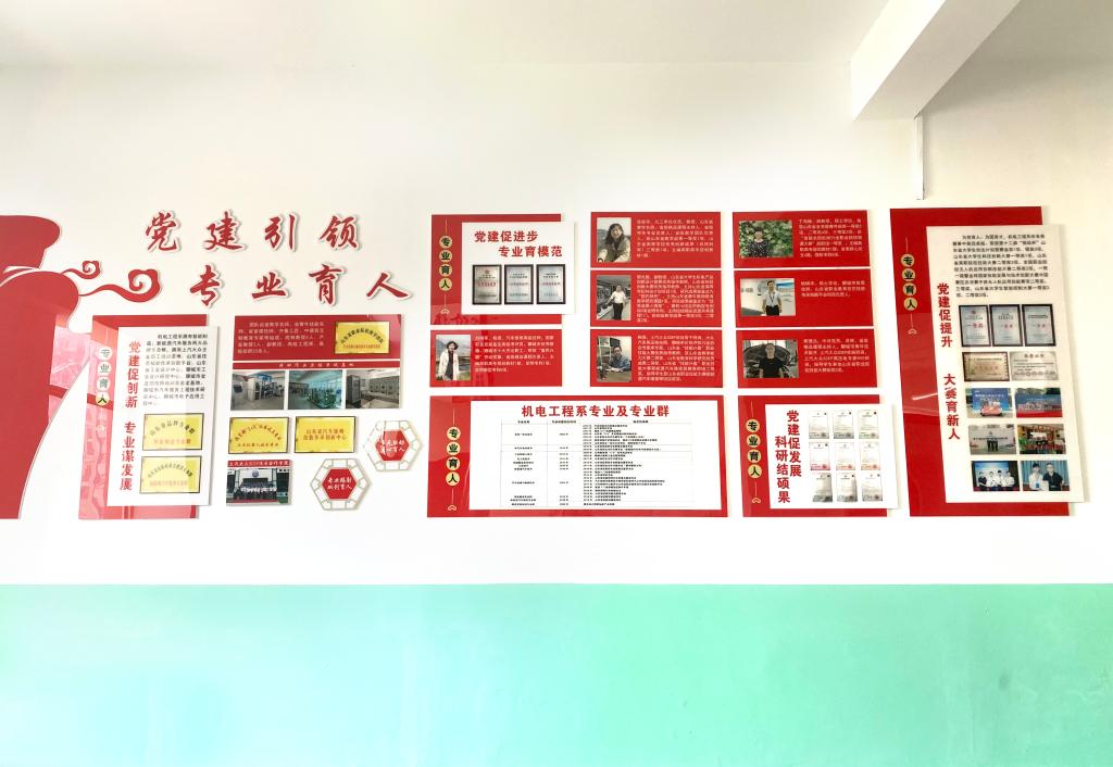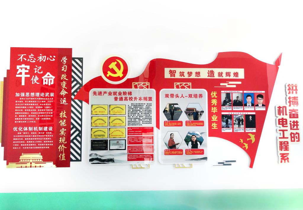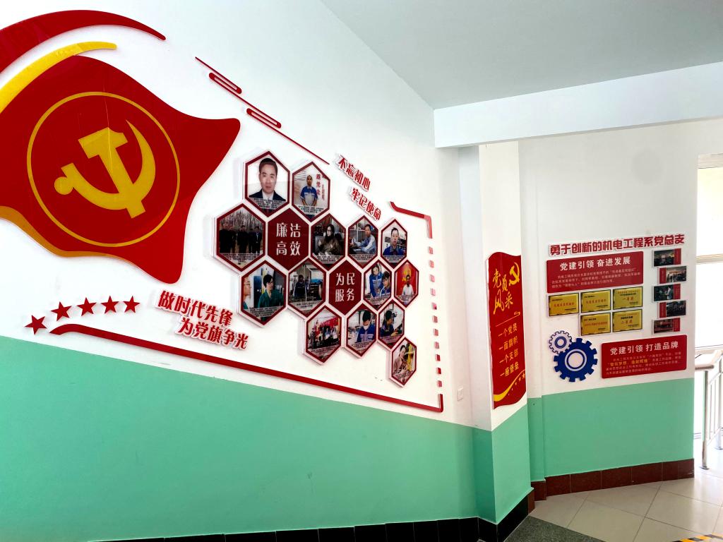 党建文化墙将教育、引领、展示与宣传融为一体,充分展示了机电工程系党建理念、党建特色与工作成果,为师生营造良好的党建学习氛围,打造成为党建宣传新阵地,不断提升党建活力,发挥党建引领作用。