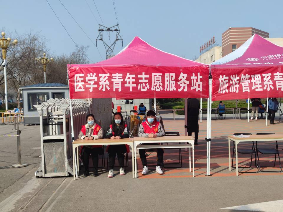志愿服务。医学系师生尽职尽责,勇于奉献,时刻发扬“螺丝钉”精神,全心全意服务于2021年春季开学,行李消毒、测量体温、身份核验。一句句“欢迎回校”,一声声“我帮你拿”,“请家长放心”,师生志愿者怀揣着一股青春热血和一份坚定的责任感,用自己的汗水诠释着“奉献、服务、向上”的雷锋精神,用实际行动书写着医学师生的使命与担当。
