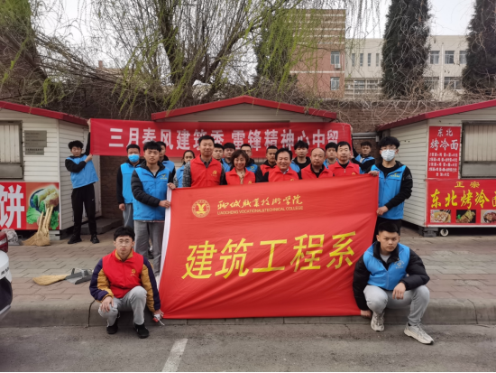 3月5日下午,在“学雷锋日”来临之际,建筑工程系党总支带领学生志愿者在聊城职业技术学院南门开展了“三月春风建筑秀,雷锋精神心中留”志愿服务活动。