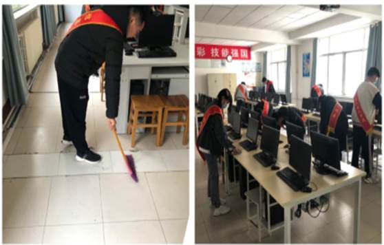清扫卫生。学生志愿者主动走进教室、实训室,对教室电脑、地面、桌子及教学工具进行清扫和擦拭。志愿者表现积极,分工明确,仔细打扫着教室、实训室的每个角落,用实际行动践行雷锋精神。