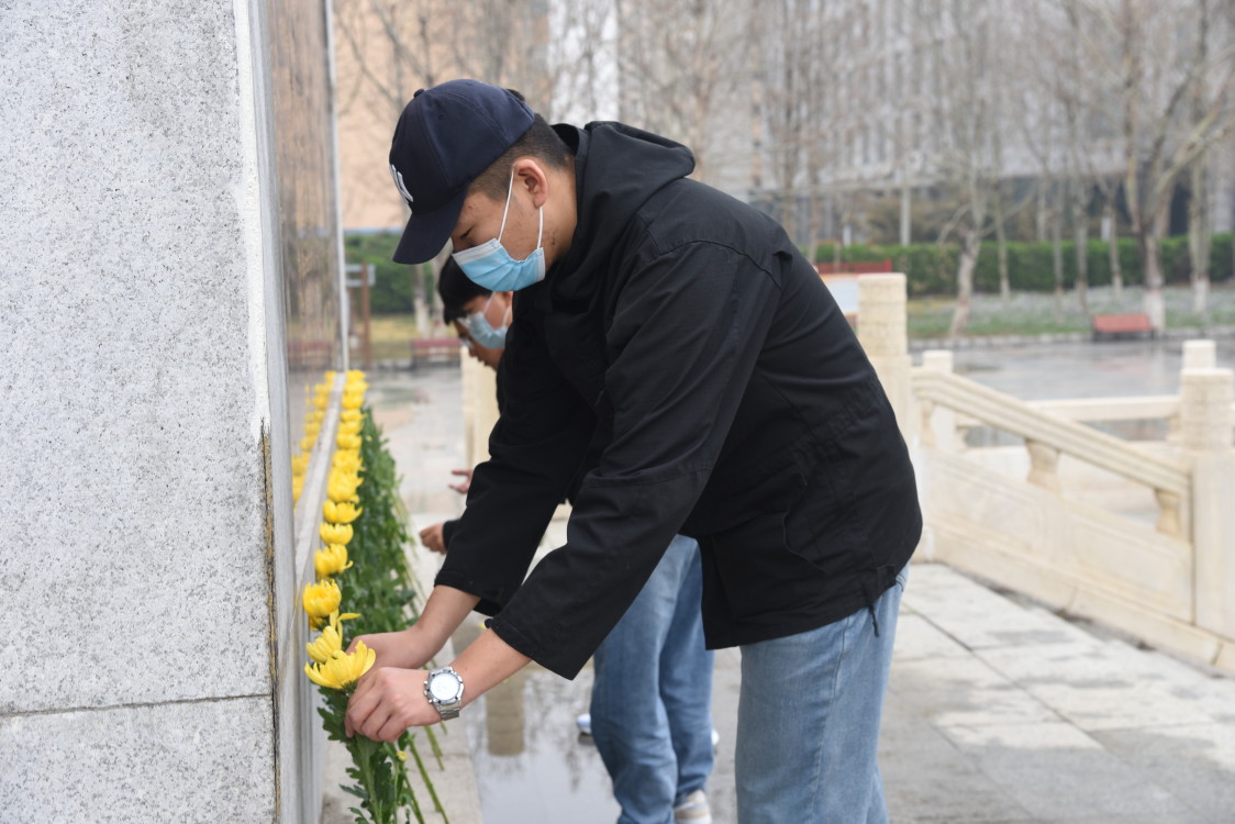 面对人民英雄纪念碑,学生代表向烈士献花,表达了对烈士沉痛的哀悼和深切的思念。