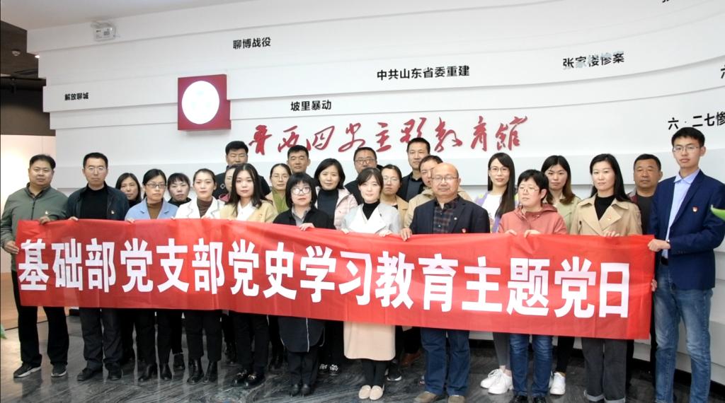 4月1日下午,基础部教工党支部开展了党史学习教育主题党日活动,组织党支部全体党员、入党积极分子和曾经参与学院鲁西“四史”主题教育馆布展创作的教师们进行了一次“红色研学”之旅。