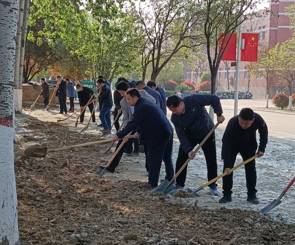 春风桃李花开日,植新添绿正当时。4月14日下午机关第一党支部联合明德物业管理公司在支部书记靖德云的带领下,在学校开展植树添绿活动。