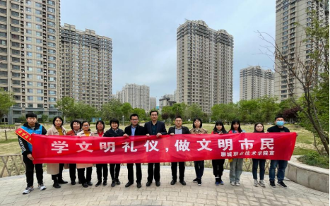 4月25日下午,在经济管理系党总支书记李学峰、党总支副书记崔兴军的带领下,经济管理系教师和青年志愿者协会的学生来到东昌府区昌润莲城祥荷园小区进行文明礼仪宣传活动,助力我市全国文明城市创建工作。