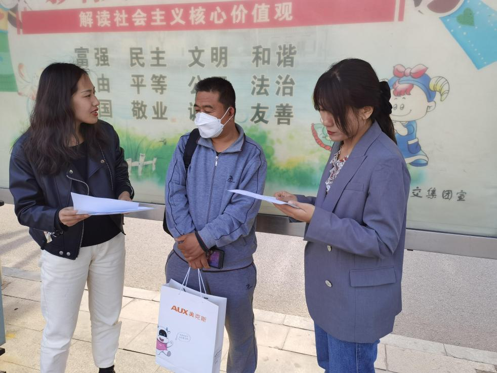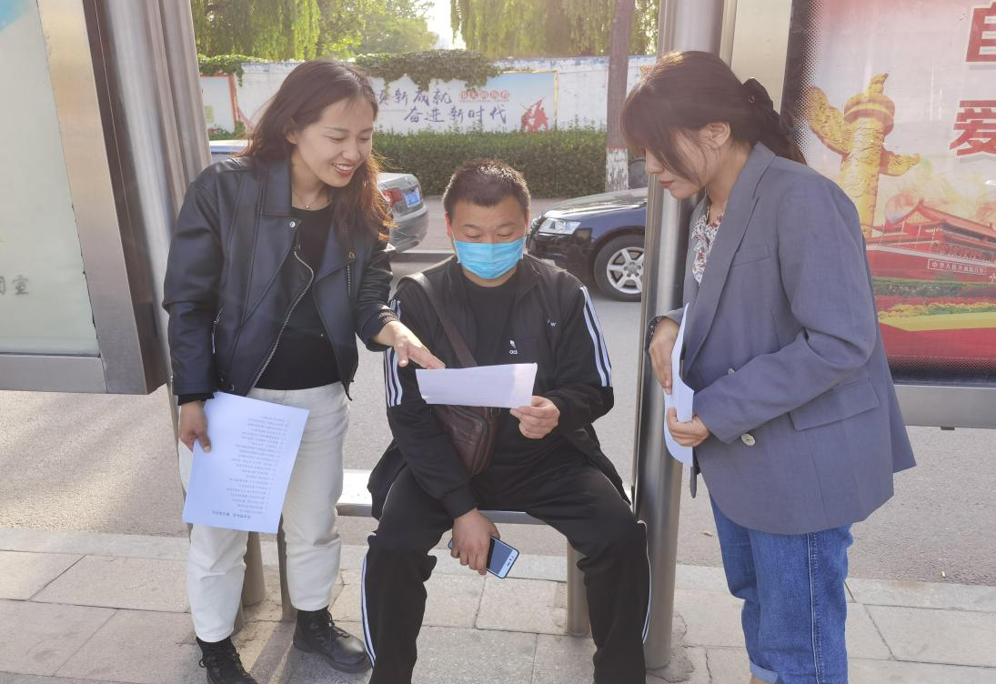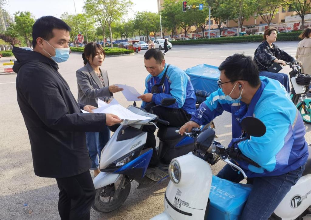 图5:思政部教师在花园路沿途对等待的外卖人员进行文明宣传标语普及