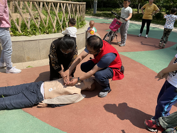 活动中,王冰同志在向广大群众详细讲解心肺复苏技能操作要领的同时,围绕如何判断患者意识和呼吸状态、如何呼救、如何正确进行胸外按压及人工呼吸等内容进行现场示范教学,鼓励群众参与实操练习。