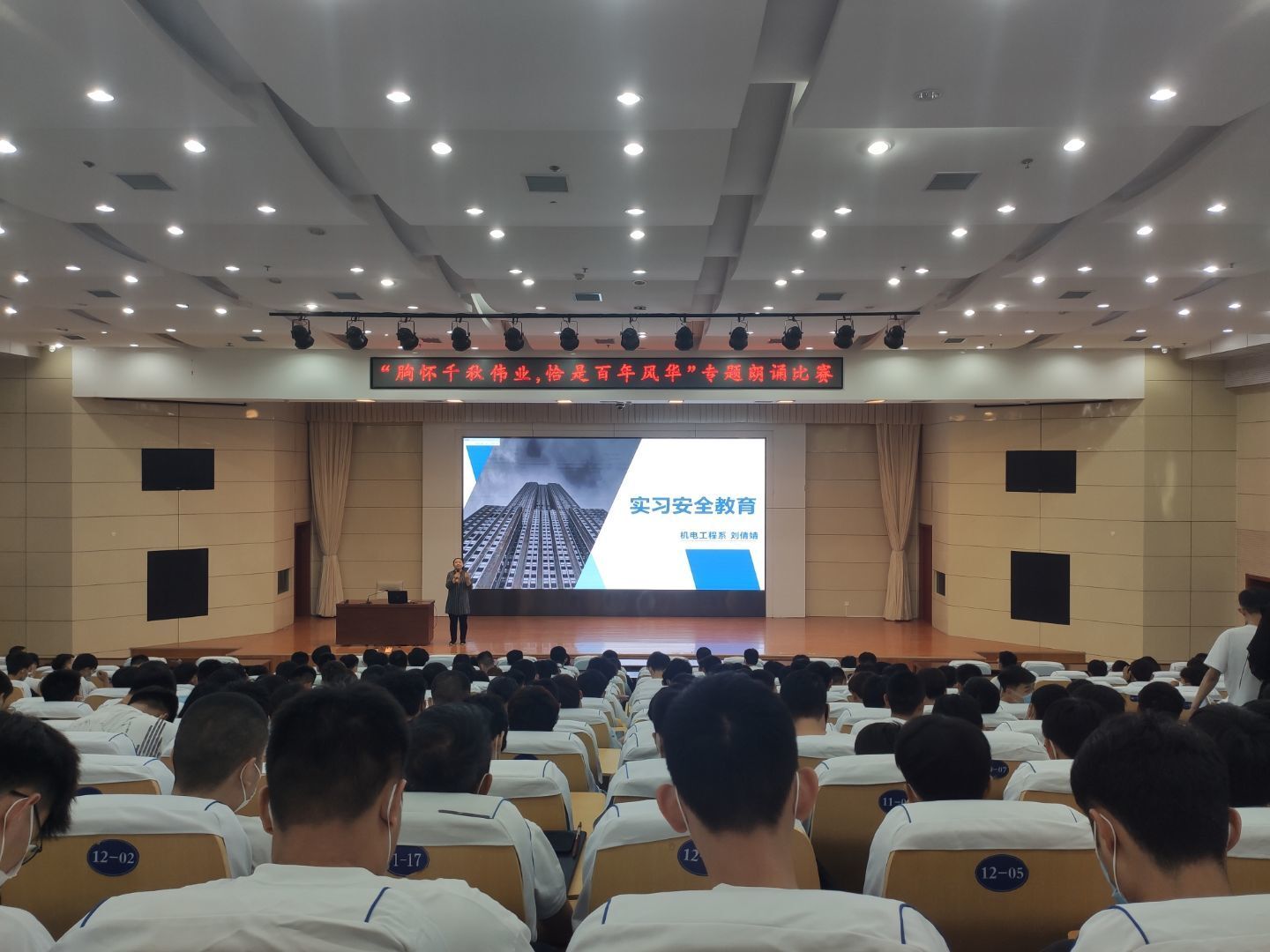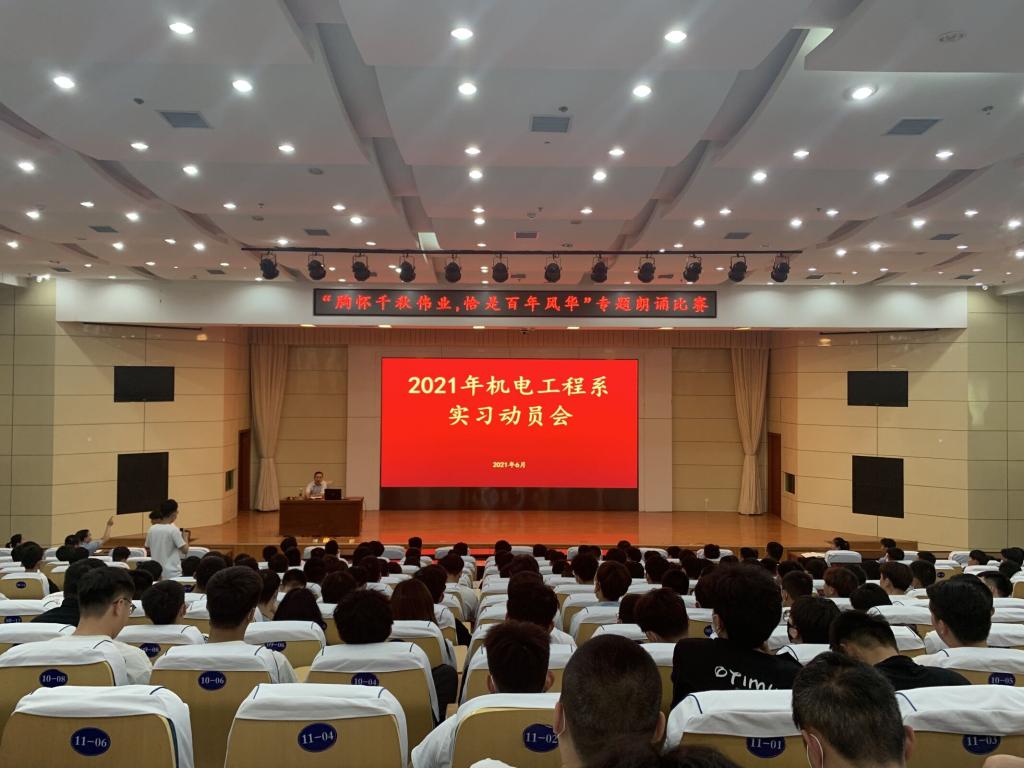 为做好2019级学生实习前的准备和教育工作,保证学生实习过程安全顺利进行,6月3日-4日,机电工程系在图书馆报告厅举行2021年实习动员会暨安全主题教育宣讲会,加强对实习生的安全教育。机电工程系党总支书记、系主任葛序风、党总支副书记张凤军、团总支副书记赵荣荣、全体辅导员、班主任、专业教师刘倩婧及2019级学生参加会议。