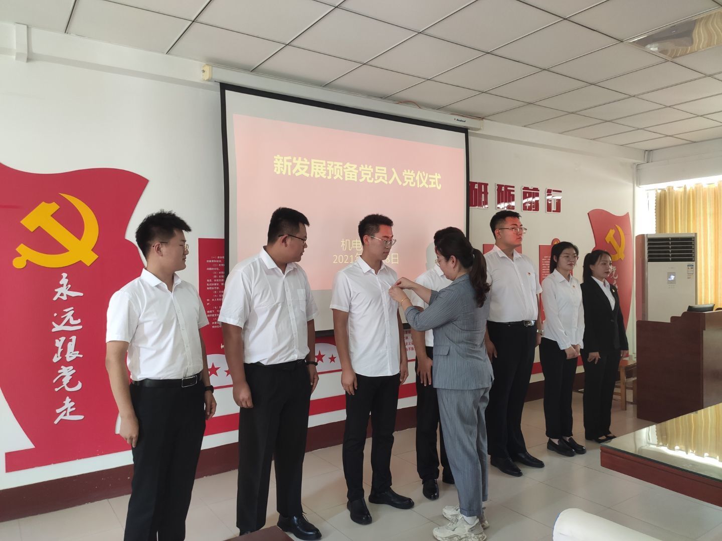 6月28日下午,机电工程系在1号教学楼四楼会议室举行“致敬建党百年”新发展党员入党仪式。学生党支部书记赵荣荣主持活动。