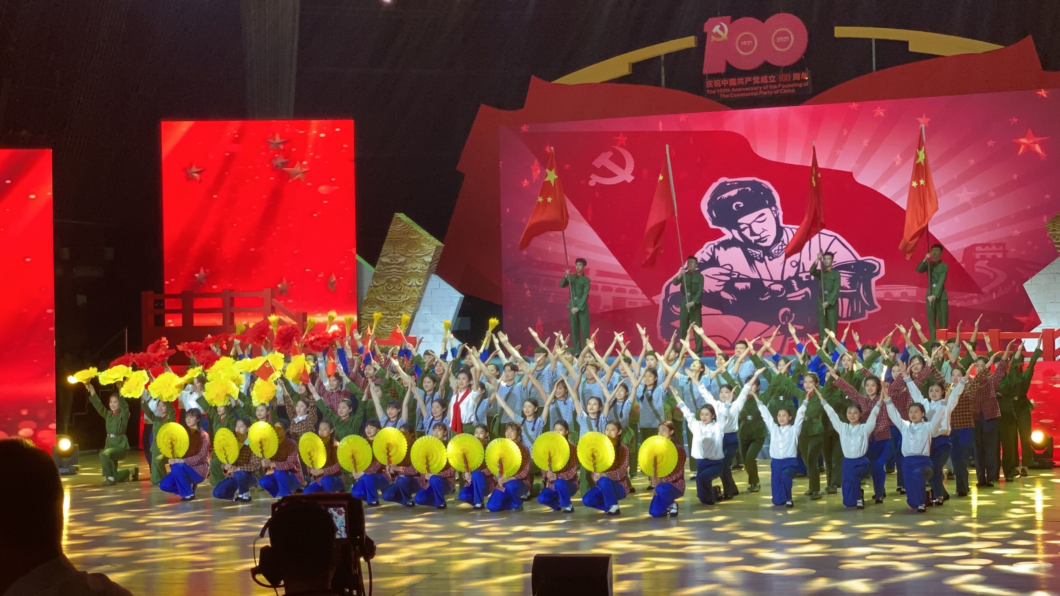 艺术团百余名学生带来了《没有共产党就没有新中国》《社会主义好》《我们走在大路上》《学习雷锋好榜样》等四首脍炙人口的经典歌曲联唱和终曲《前进吧,中国共产党》,用嘹亮的歌声和优美的舞姿赞颂党的恩情,用真挚的情感表达对党百年华诞的祝福,使现场观众沉浸在浓浓的爱国热情中,赢得了阵阵喝彩。