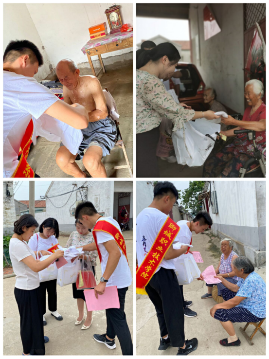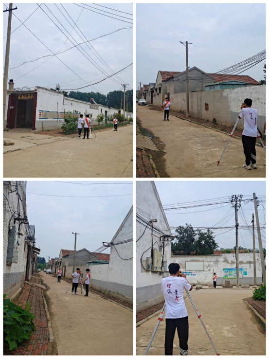 在刘扒庄村,大家来到孤寡老人的家中,为老人打扫房屋、送上数件夏日短袖,老人脸上发自内心的微笑。队员们为村民发放防溺水宣传页,向群众宣传防溺水知识,同时还根据他们的尺码,给每人送上了一件短袖,带来了夏日清凉。大家利用专业特长用专业水准仪测量了村里的街道,得到了群众的支持和称赞。