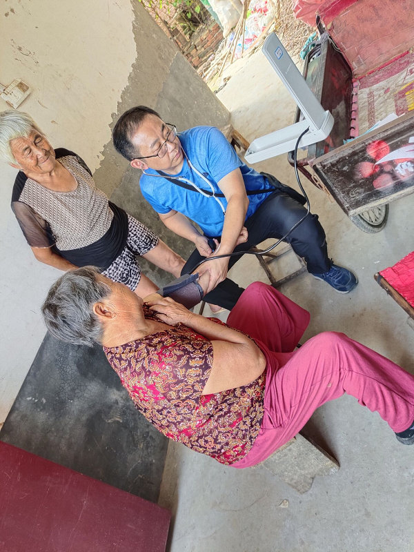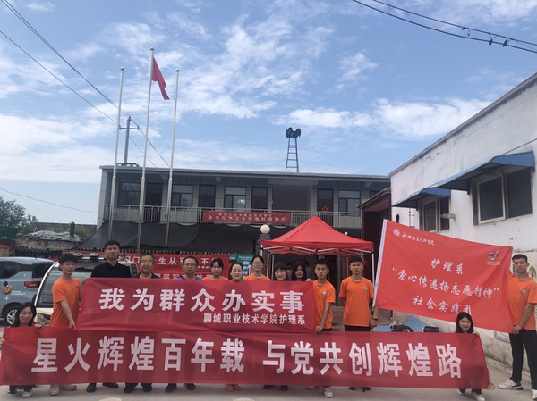 7月19日上午,护理系“爱心传递 扬志愿精神”社会实践团师生在朱老庄镇卫生院医护人员及村支部书记的带领下,进入毛营村开展入户访谈、问卷等主题调研。
