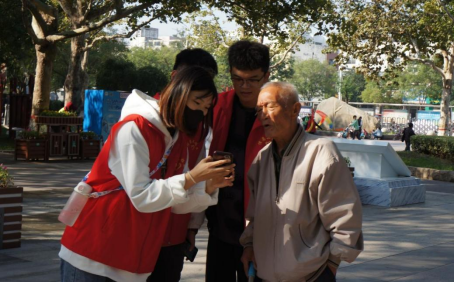 学生充分发挥专业特长,帮助老年人学习使用智能手机,热心的为他们介绍微信、抖音等各种流行软件的使用方法,教老人使用视频通话与子女聊天。