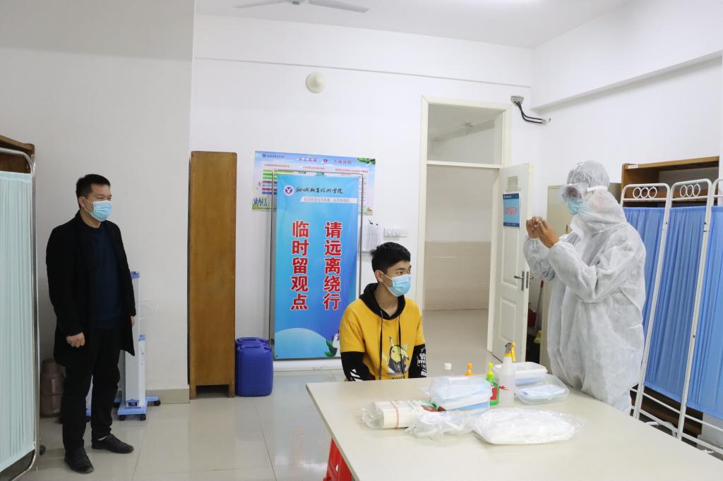 为进一步提高疫情防控应急反应能力,增强师生消防安全意识,11月4日,医学系组织全体班主任、实训室操作员和在校生开展了疫情防控演练和消防演练。
