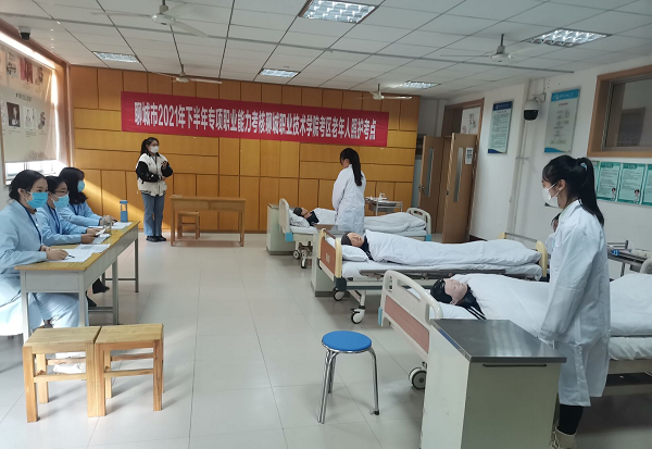 护理系严格按照项目要求完成考前准备和考评任务。考前各项准备合理,考场布置、物料准备等规范且符合要求;考中人社局领导亲临指导,科学分工,各级部门认真负责,各项工作井然有序,工作流程顺畅,圆满完成了考评任务。